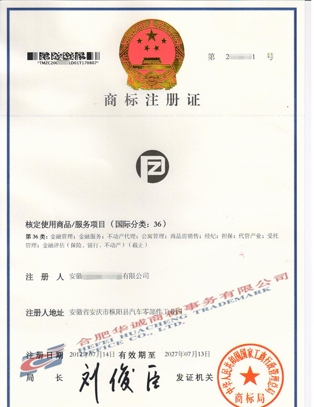 您委托我所代理商标注册申请,名称为“图形”36类商标注册证已下达。