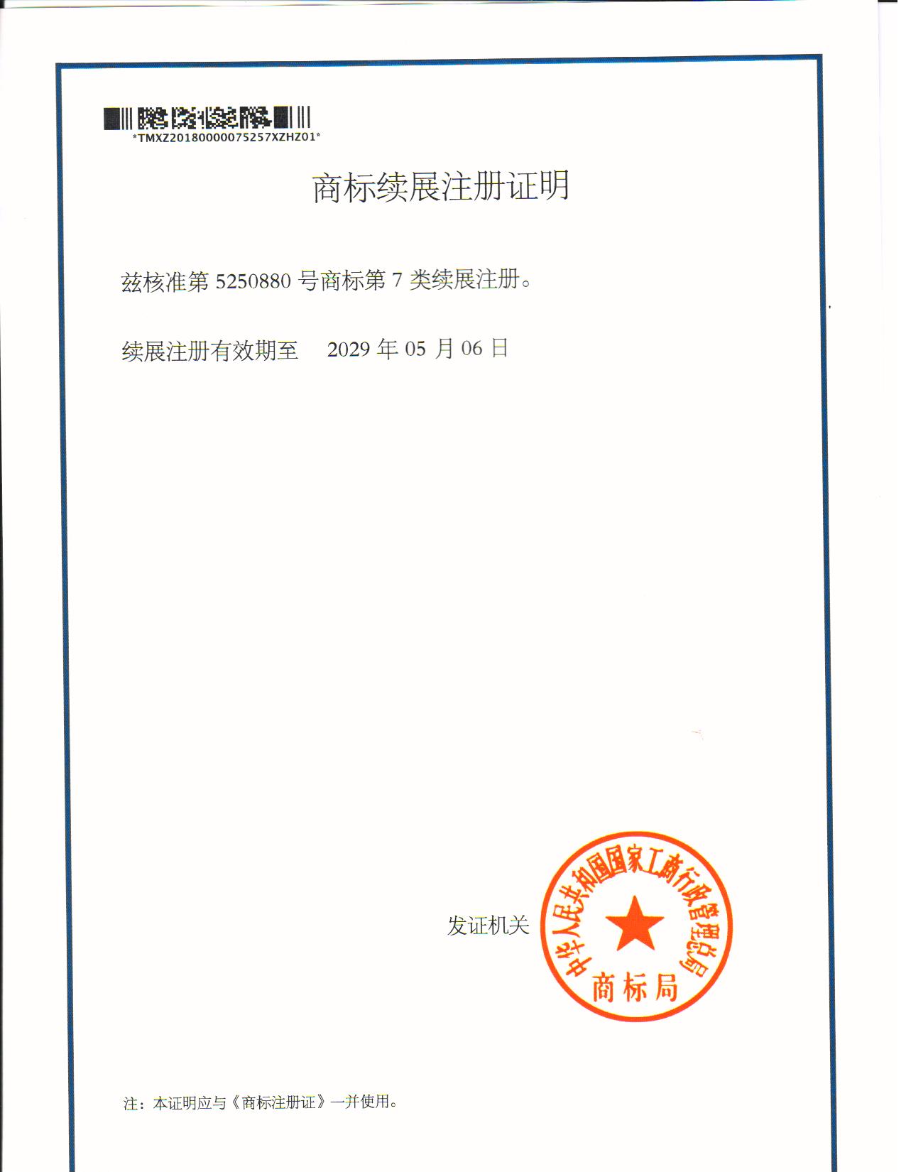 您委托我所代理商标注册申请,第“5250880”7类商标续展注册证明已下达。